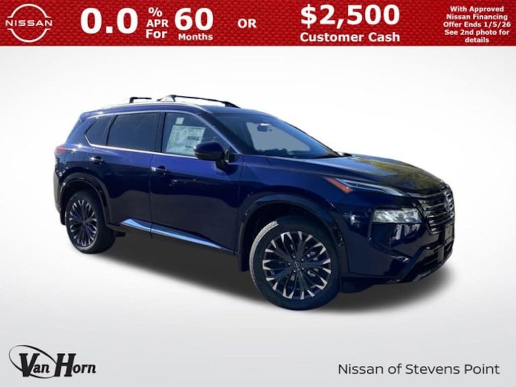 This Rogue includes full factory warranty. Please call to confirm availability, features and specifications! Price includes all available rebates and current incentives for which everyone qualifies. Price does not include sales tax, title, registration, dealer service fee, finance charges, and any other fee required by law. See Dealer For Details. Van Horn is an Employee Owned Automotive Group with ties to all of the Communities we serve. Price includes: $2500 - Nissan Customer Cash. Exp. 01/05/2026